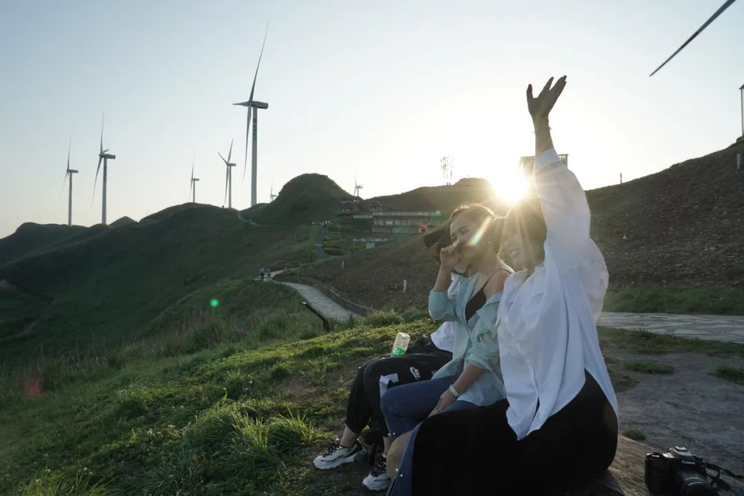 山顶是休憩和谈天的好地方,远眺云海,近能俯瞰高山草海。傍晚时分,气温降了下来,山风吹过衣衫,一切都舒服得刚刚好。
