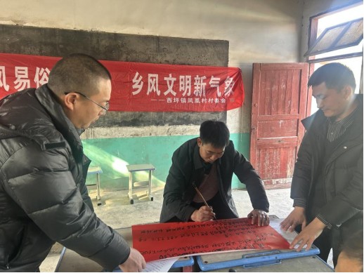 2026-01-081月8日,西坪镇凤凰村总支书记带村干部和驻村干部到高寨组、天池组等村民组,召开群众会签定组规民约宣传移风易俗推进乡风文明建设。