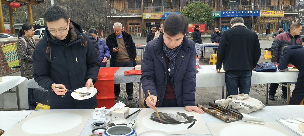 2026-01-07为传承弘扬中华优秀传统文化,深化仁怀、遵义两地文化交流与合作,增进地域间文化情感共鸣,2026年1月7日10时至15时,在泮水镇西乡文化广场开展了以“笔走偏岩河 墨染西乡情”为主题的书画交流活动,仁怀市、播州区两地书画家现场创作书法、美术作品赠送西乡父老乡亲,并为西乡父老乡亲书写春联,送上祝新春“福”。该活动由播州区文联邀请仁怀市文联共同主办,泮水镇党委、政府承办。