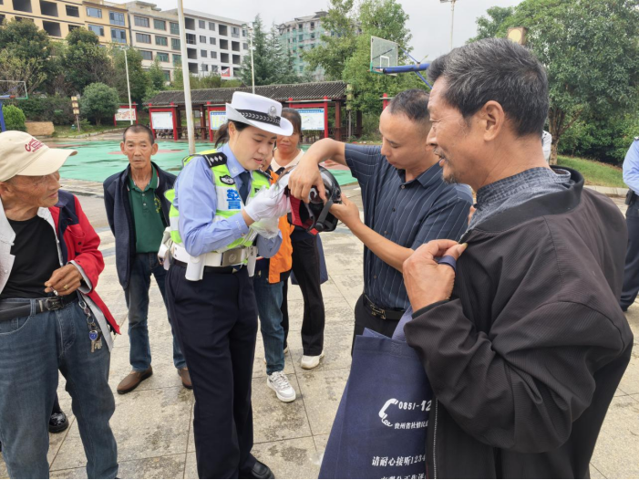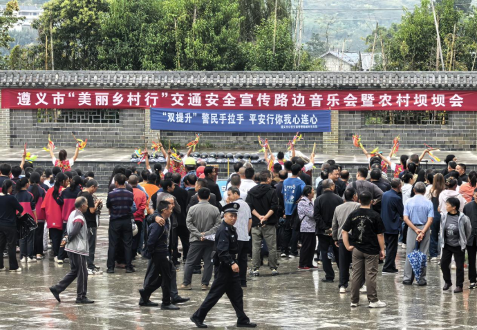 10月15日,遵义市播州区西坪镇在西坪社区平水里文化广场开展交通安全和普法、禁毒、森林防火集中宣传活动。