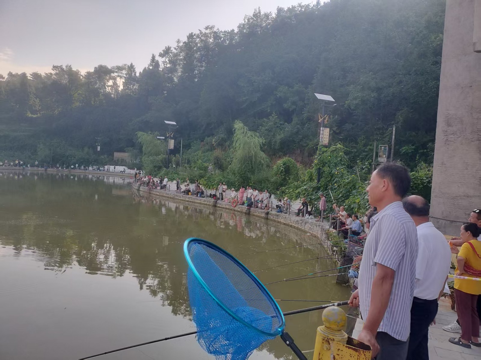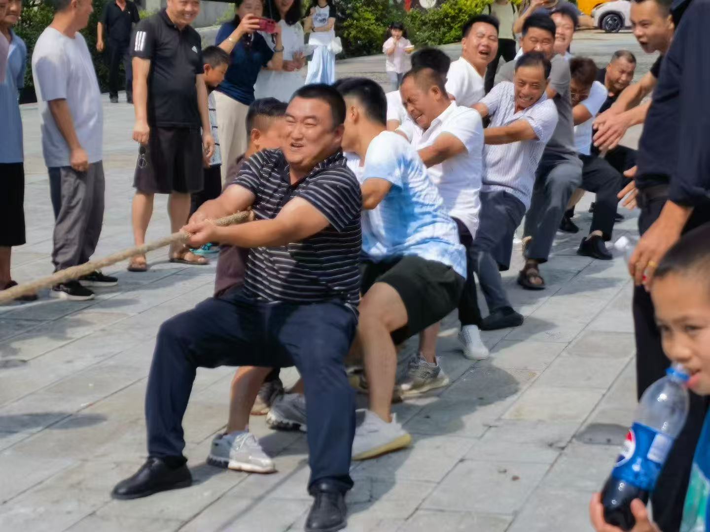 在钓鱼区,避暑游客、钓友同台竞技,静候鱼儿上钩,展现耐心与技巧。赶球比赛中,参赛者们协作配合,笑声与加油声此起彼伏;拔河赛场更是凝聚合力,将气氛推向高潮,各代表队卯足干劲,紧握长绳,身体后仰,齐心协力往后拉,展现出“心往一处想、劲往一处使”的团结力量;而旱地插秧比赛则充满农耕趣味,参赛者们弯腰“插秧”,模拟农事的乐趣,重温农耕文化的魅力。