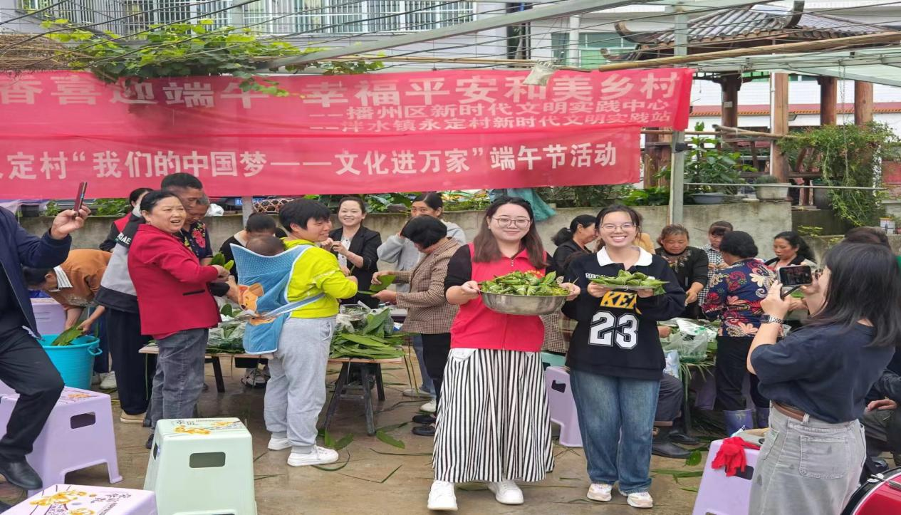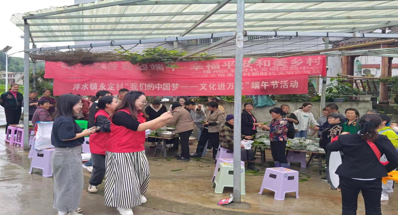为继承和弘扬中华民族优秀传统节日文化,进一步丰富我镇群众精神文化生活,在粽香端午即将来临之际,泮水镇在遵金村、永安社区、中坪村、永定村组织开展了丰富多彩的端午节活动。6月6日上午,泮水镇遵金村村委组织安置点居民和在家村民开展了“粽叶飘香过端午,幸福和谐邻里情”为主题的包粽子比赛活动;6月6日上午,永安社区在西乡文化广场开展了泮水镇“我们的中国梦--文化进万家”为主题的端午节活动;6月6日下午,中坪村组织安置点群众召开了“迎端午、品粽子、感党恩”活动;6月7日早上,永定村组织群众召开“我们的中国梦-文化进万家”端午节活动,活动现场村支两委工作人员组织群众开展包粽子活动,并在包粽子的过程中穿插有奖知识问答环节,村民们积极抢答,现场气氛热烈。 一审一校:敖维敏 二审二校:黄均茂 三审三校:王炜琪