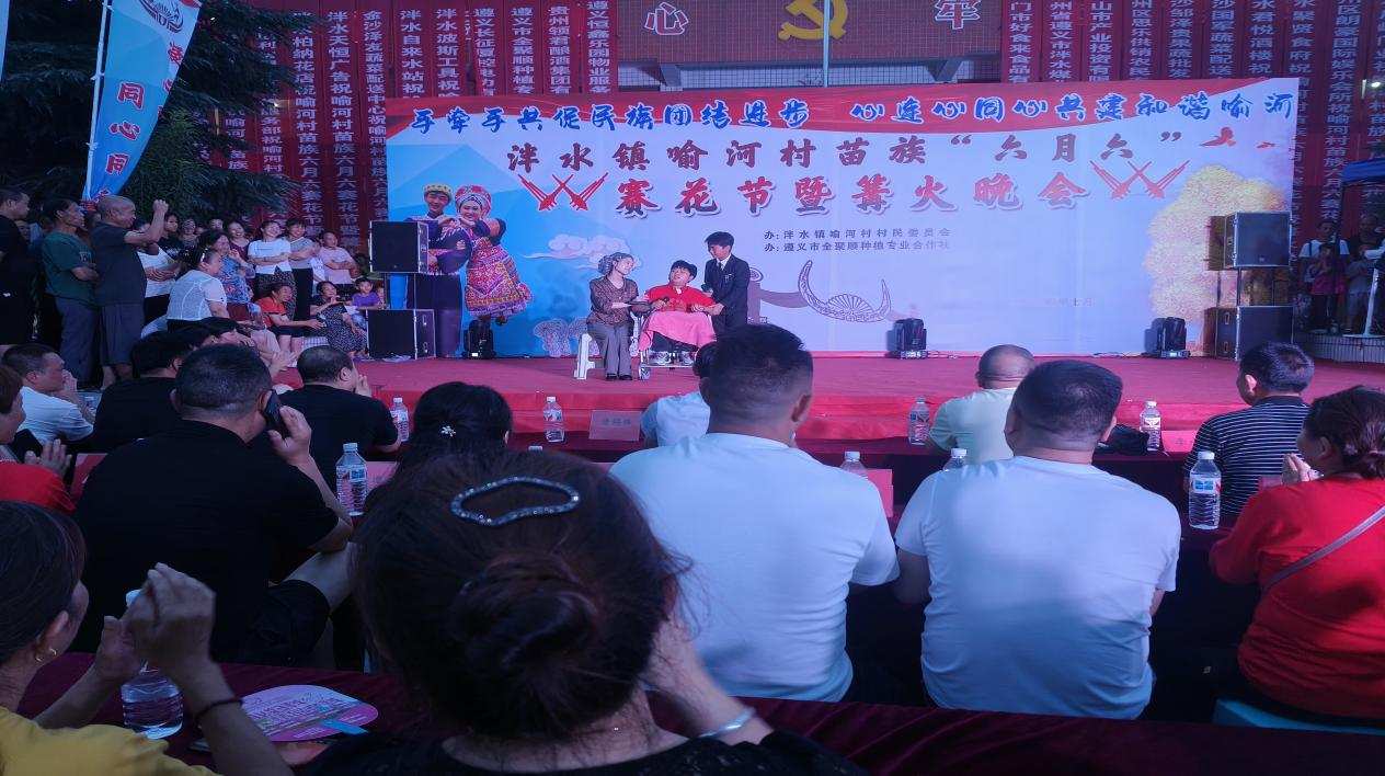 为了进一步丰富民族文化生活,增强民族团结,2024年7月11日(农历六月初六)16时至22时,泮水镇喻河村举行了以“弘扬民族传统文化,促进民族团结进步;助力乡村振兴,打造和谐喻河”为主题的苗族“六月六”赛花节暨篝火晚会活动。 本次活动有苗族芦笙舞蹈及芦笙表演、苗族鼓舞、苗族传统山歌及情歌对唱表演、土家酒歌、男女独唱、二胡表演、小品、各村社业余团队舞蹈、健身操等41个文艺表演节目。精彩纷呈的节目演出,引得全场观众欢呼,特别是“小品:孝心不能等”节目演得情真意切、感人肺腑! 歌舞表演结束后,苗家男女老少和所有在场舞台演员、汉族来宾、各位领导群众大家手拉着手,围着红红的篝火一起载歌载舞,如痴如醉,现场一片欢声笑语,大家在激情狂欢中享受丰盛的苗家篝火文化“盛宴”,燃烧着心中的幸福和快乐。 一审一校:敖维敏 二审二校:黄均茂 三审三校:王炜琪
