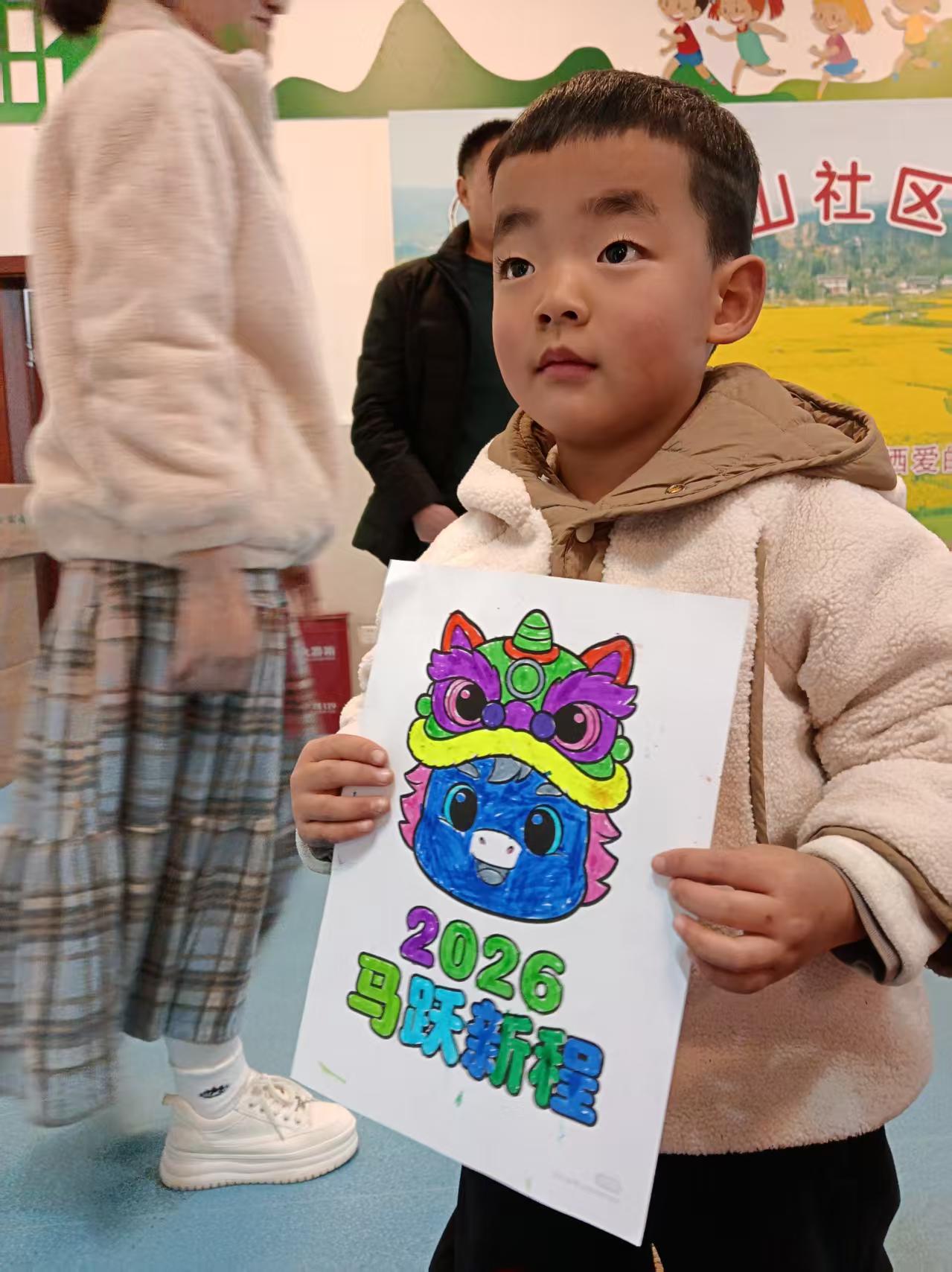 活动尾声,孩子们手捧自制“新年祝福画”进行合影纪念。此次活动在温暖而欢快的气氛中缓缓结束。